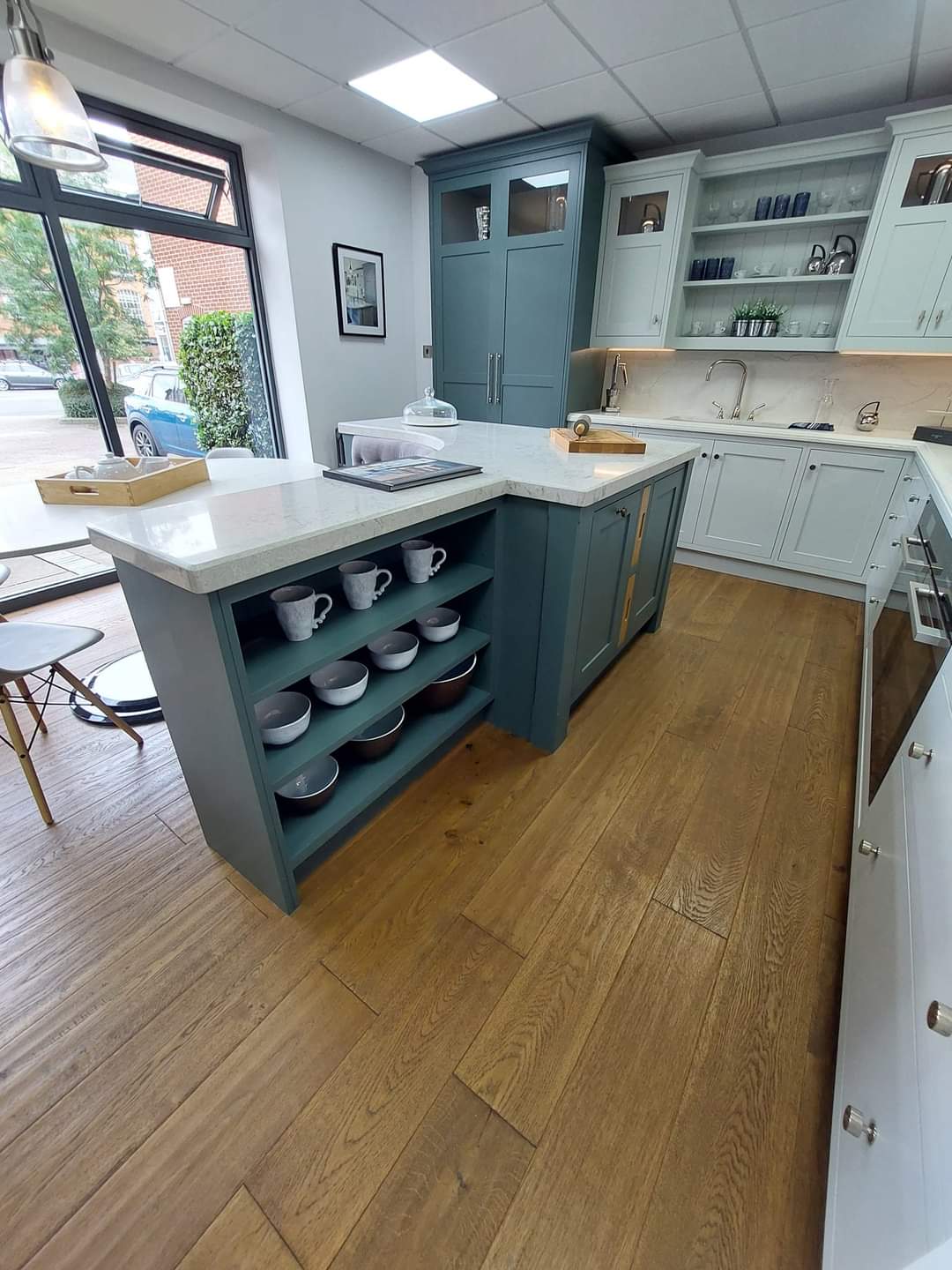 View Our Work On This Hand Painted Kitchen Display In The Alexander Lewis Kitchen Studio In Market Harborough.