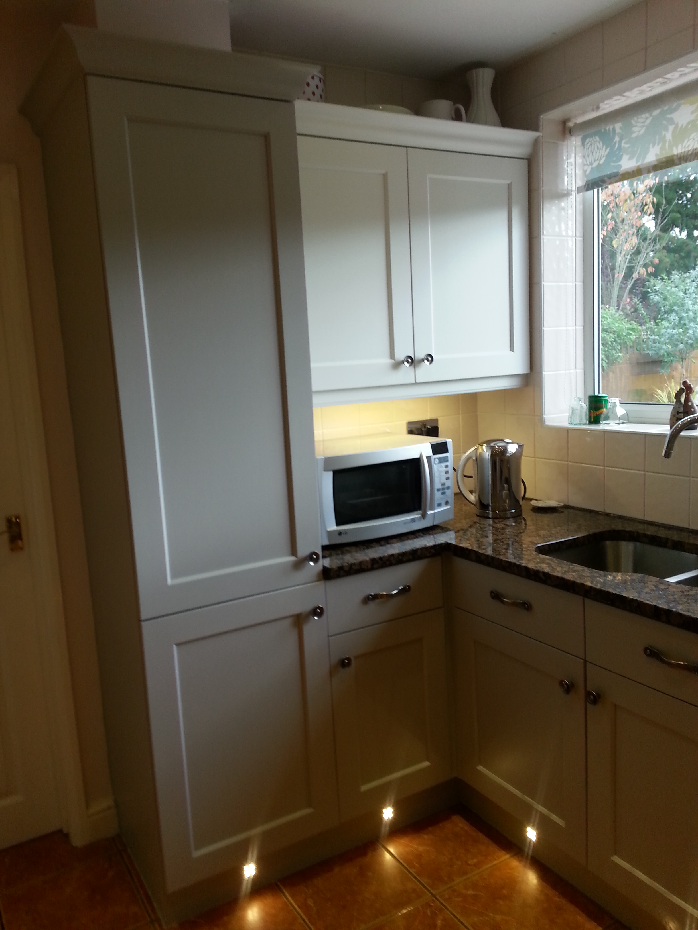 The customer also used a local company to supply and fit new granite work surfaces. I must say, the overall effect was stunning, the new pewter handles that I fitted also really helped to make the Hand Painted kitchen look like a show room when finished. They where supplied by Parker Kitchens of Towcester, a local company I have dealt with for many years and would highly recommend their services.