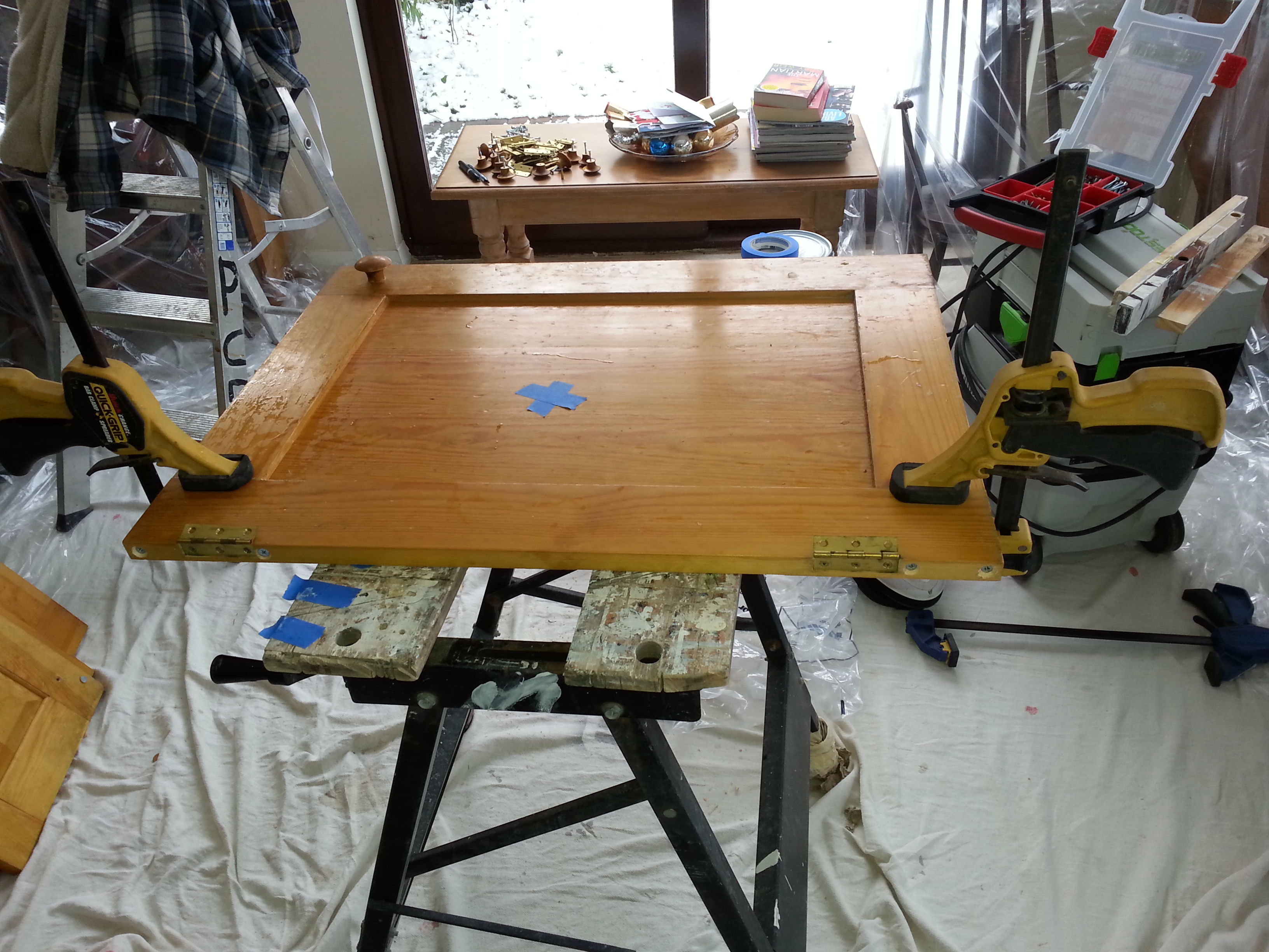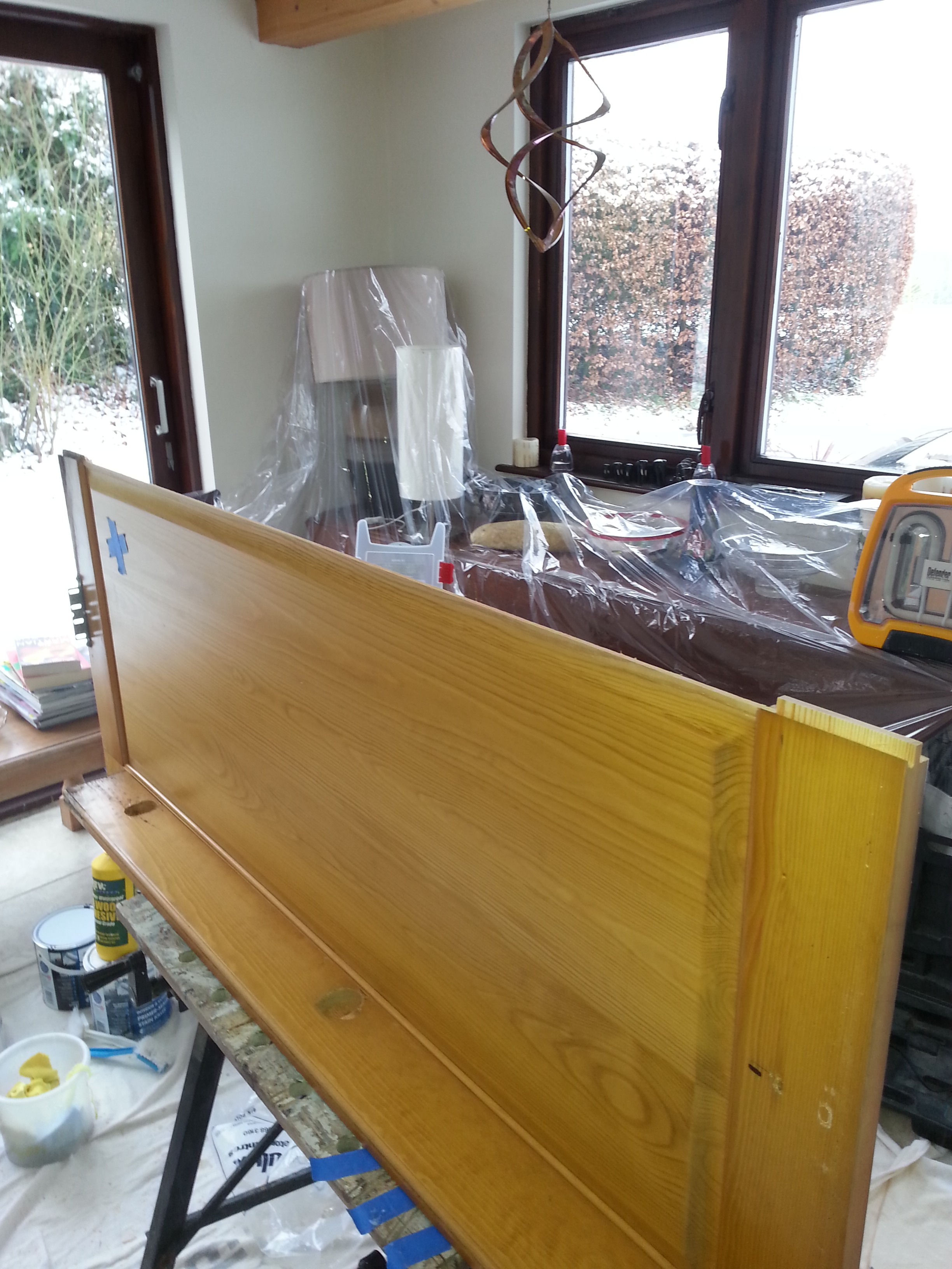 This was quite an interesting refurbishment prodject i recently carried out for Traditional Painter.com,  in Melchbourne, Bedfordshire, 18 years old was supplied and fitted by A Bell & Co Ltd of Northampton. In need of a major make over, 1st job was to carry out repairs to the doors, 4 of them had joints that had become loose and cracked, i drilled and screwed and glued the loose joints, they where then clamped over night to dry.