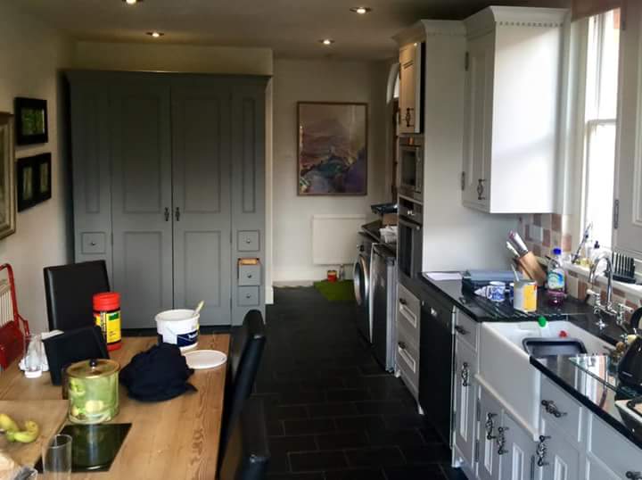 As you can see from the photo above the clients chose a feature colour for the Full Height Larder Unit In Manor House Grey in a matt finish, The remaining areas of the kitchen where finished in CornForth White, I recommended a satin finish for these areas much more durable for the working areas of the kitchen.